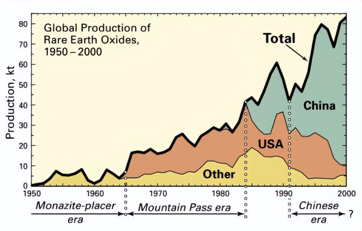 2005年美国第一次设限,我们只能把稀土原矿低价卖出去,一年出口量涨10倍,价格反而跌了60%。